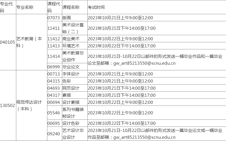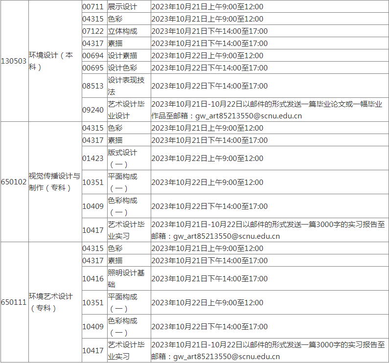 华南师范大学美术学院关于2023年下半年自考社会考生实践考核科目时间安排的通知